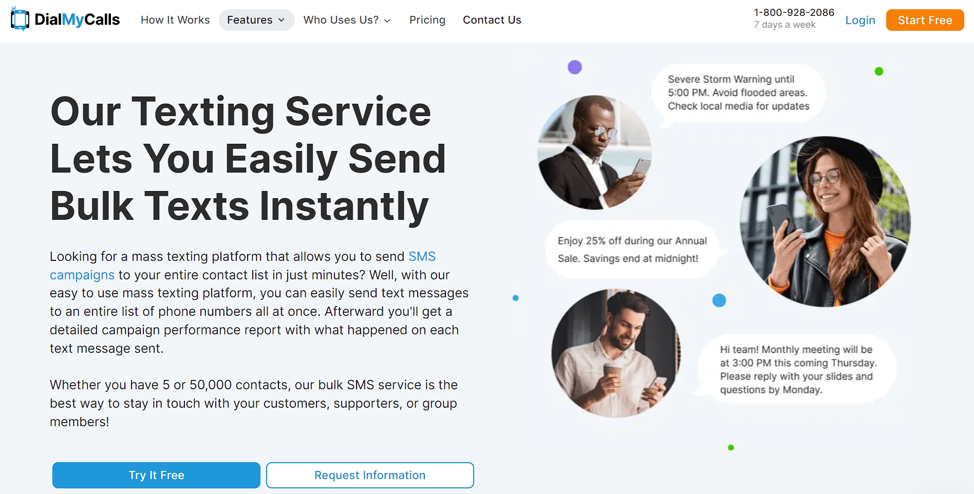 Let’s look at a real brand that employs this strategy. DialMyCalls, a service for easily sending mass texts, nails their value prop with: “Our Texting Service Lets You Easily Send Bulk Texts Instantly.”