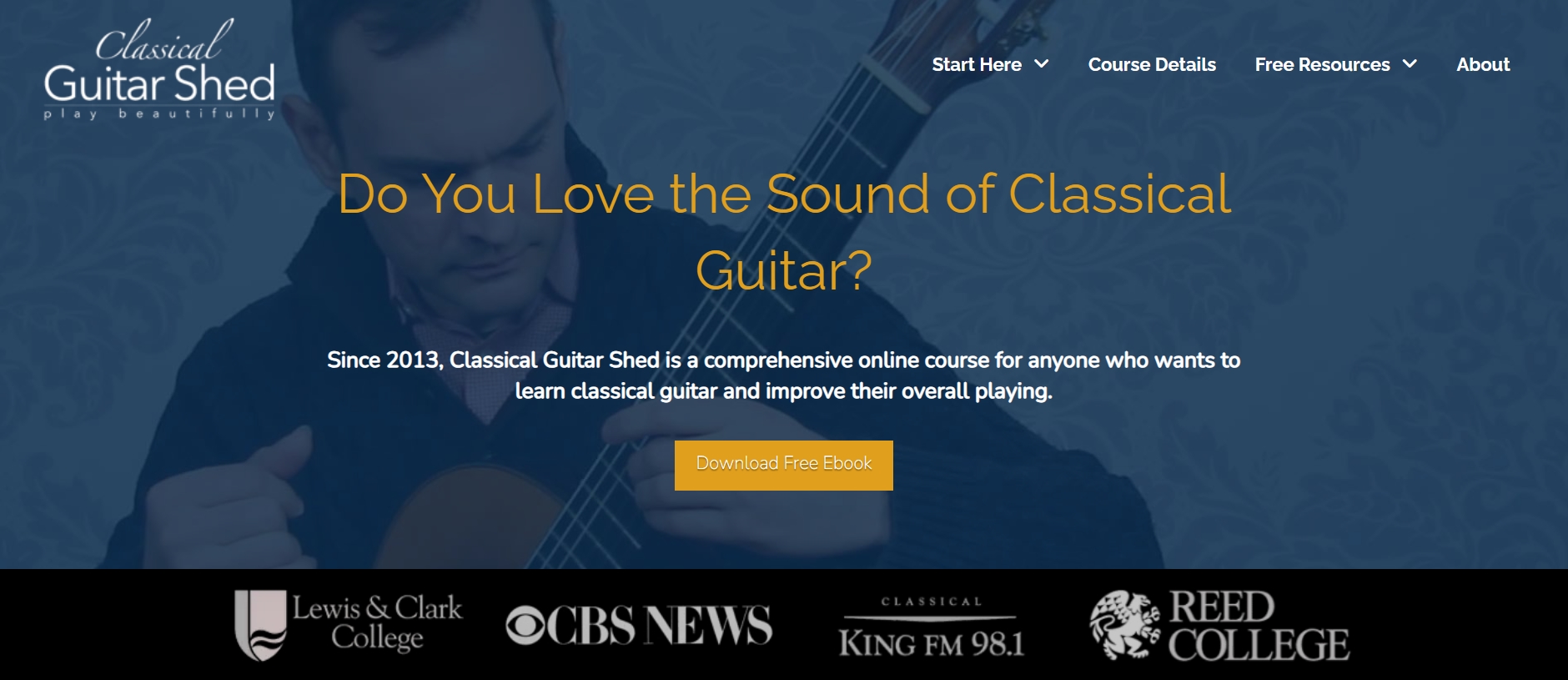 Classical Guitar Shed, an online guitar learning platform, aces this tactic by featuring the logos of reputable educational institutions and well-known media outlets.