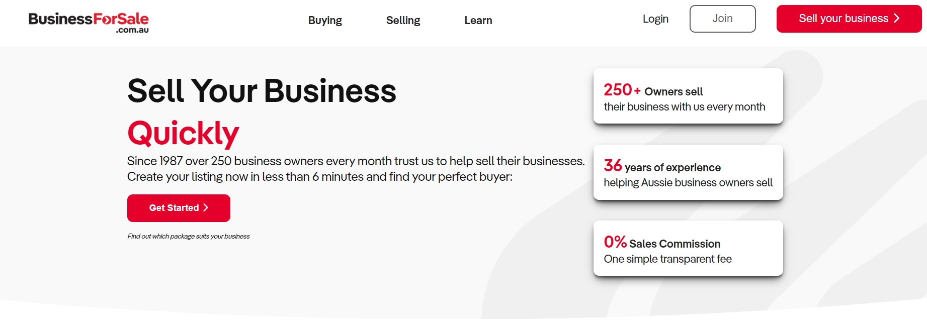 Australian Business For Sale, a platform for buying and selling businesses, mastered this tactic with header stats like “36 Years of Experience”, “250 Business Owners Every Month”, and “0% Sales Commision.”