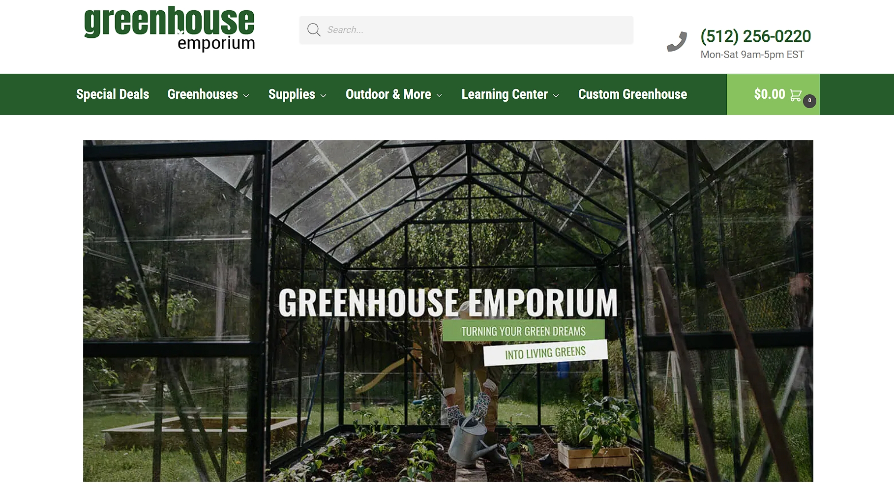 Greenhouse Emporium, a retailer specializing in gardening and greenhouse supplies, embraces accessibility in their header design with clear, easy-to-read text and a simple, intuitive layout.