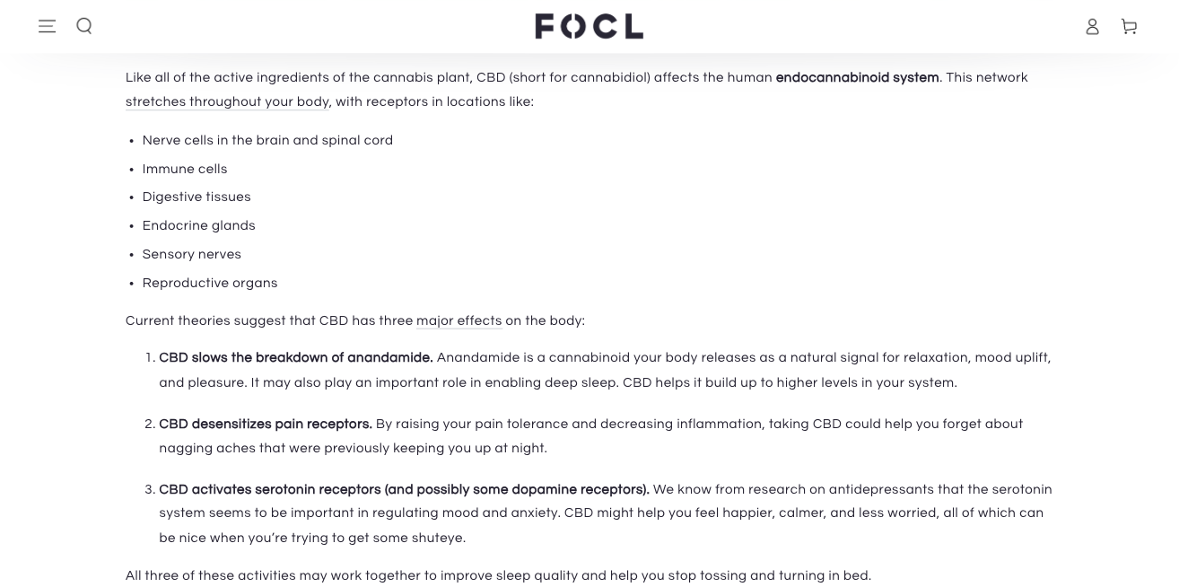 If you check out the FOCL blog posts, you’ll notice that the brand publishes many informative resources to introduce and explain its sleep supplements. However, what helps this company stand out from its competitors is that it makes a point of always providing scientific evidence for its claims. Such a small adjustment to an otherwise traditional content marketing strategy helps FOCL show its target audience that it stands behind its promises and that its products genuinely have the potential to solve sleep-related pain points.