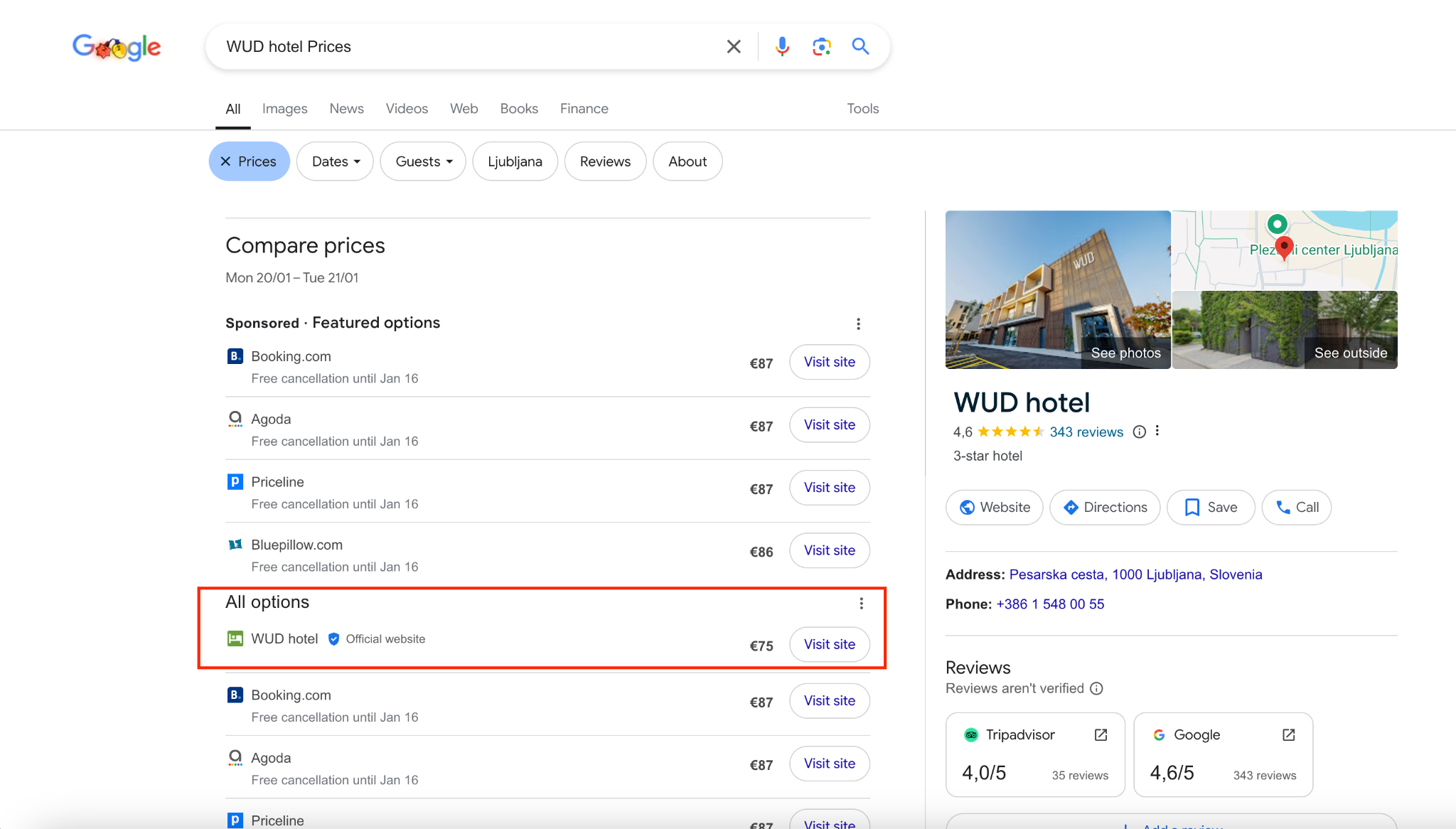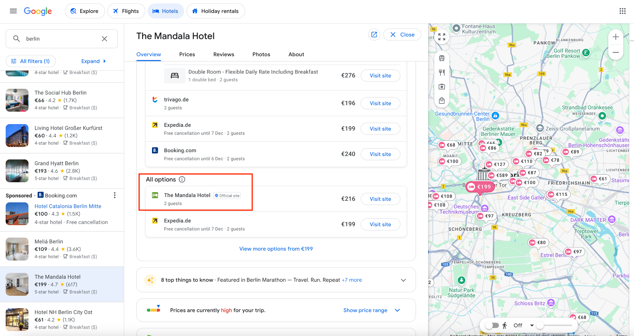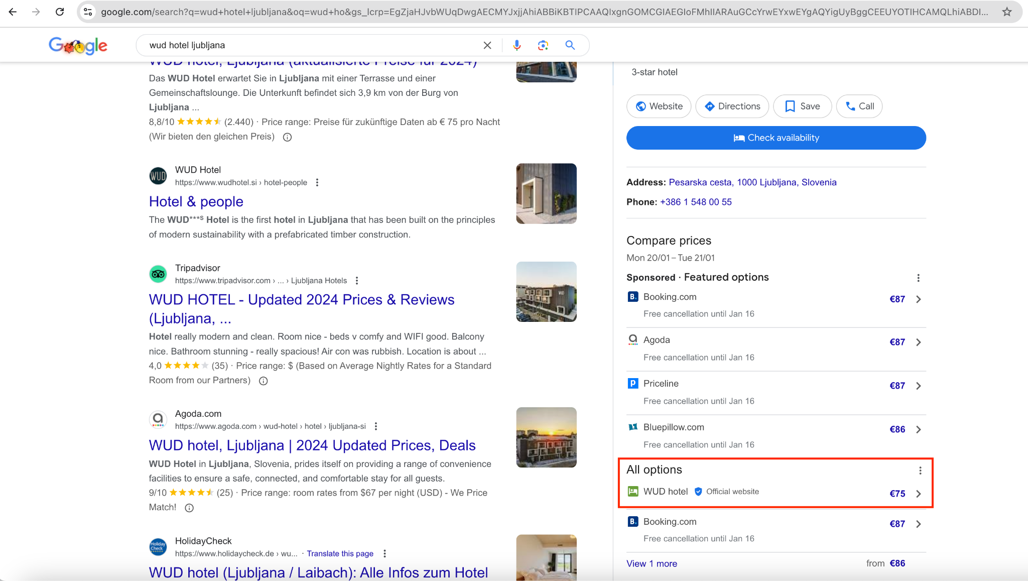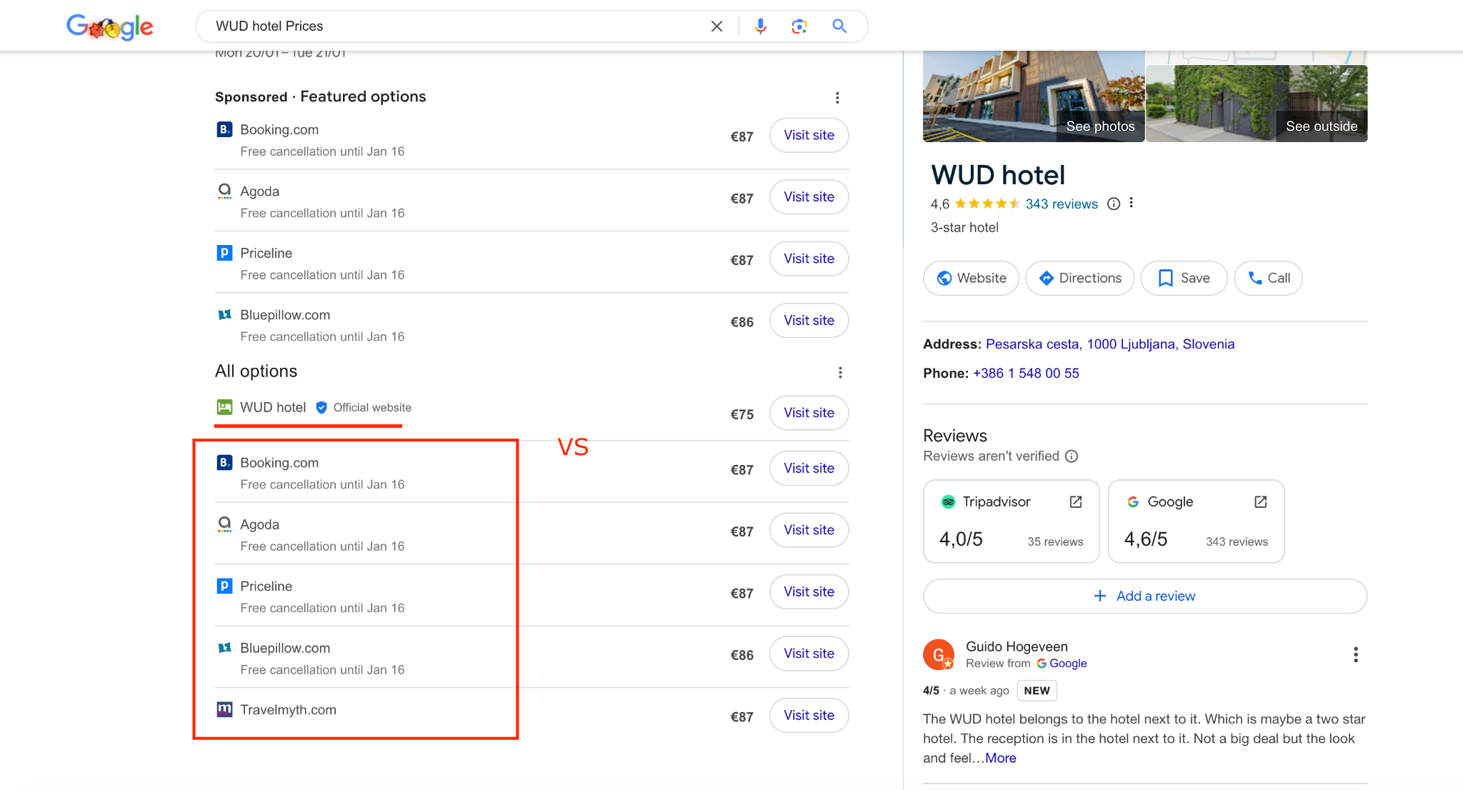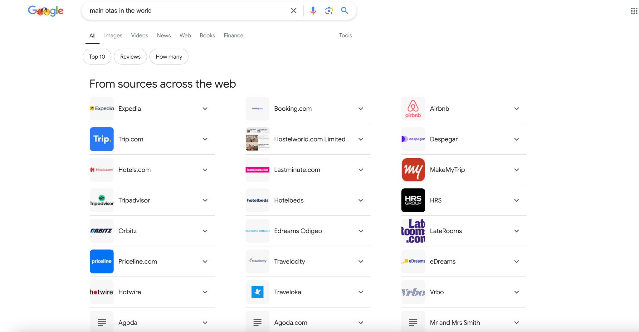 Here is what a search on Google reveals about main OTAs: