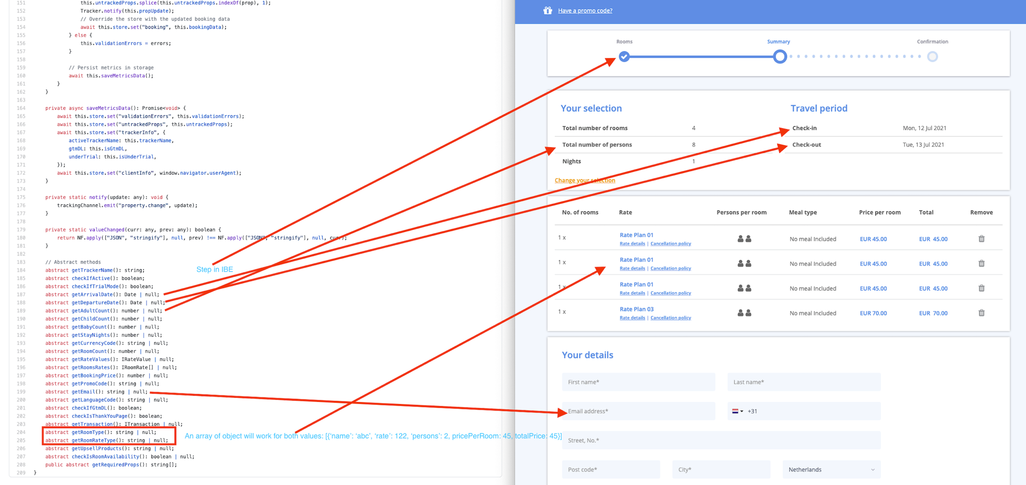 - Room Selection: Track the number of adults, children, and infants selected, along with the number of nights and currency preferences.