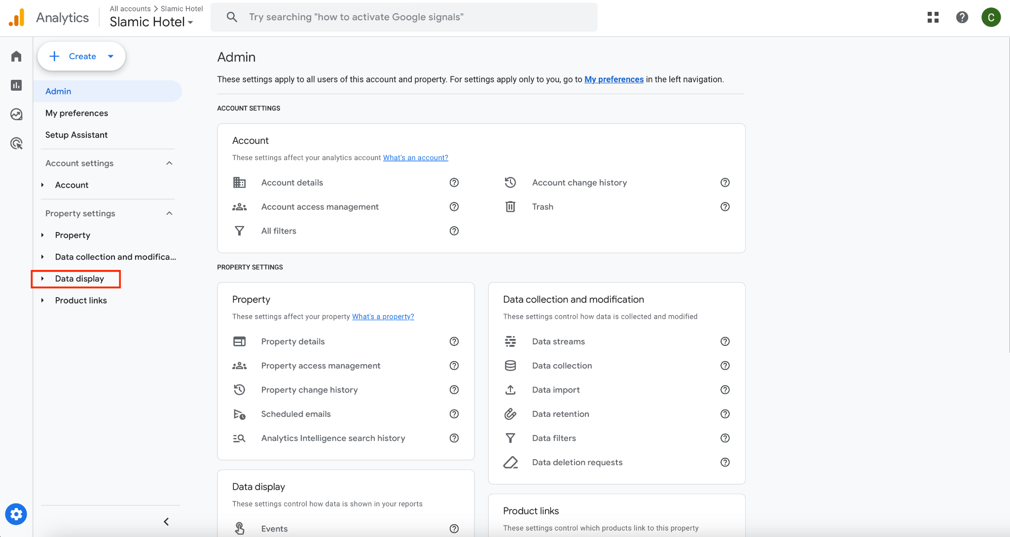 Once inside Admin, please click on Data display, that belongs to Property settings category:
