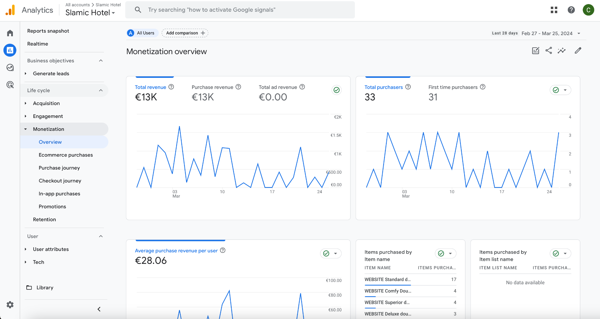 For example, you may have an overview of the Monetization: