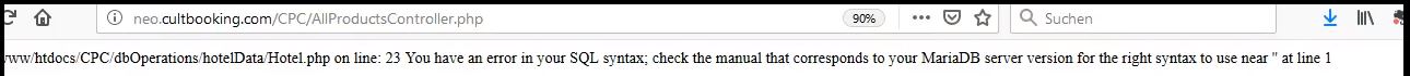 In the past, when user session expired, the following error message was shown: ‘ Error File: /www/htdocs/CPC/dbOperations/hotelData/Hotel.php on line: 23 You have an error in your SQL syntax; check the manual that corresponds to your MariaDB server version for the right syntax to use near ” at line 1’ , for desktop and mobile: