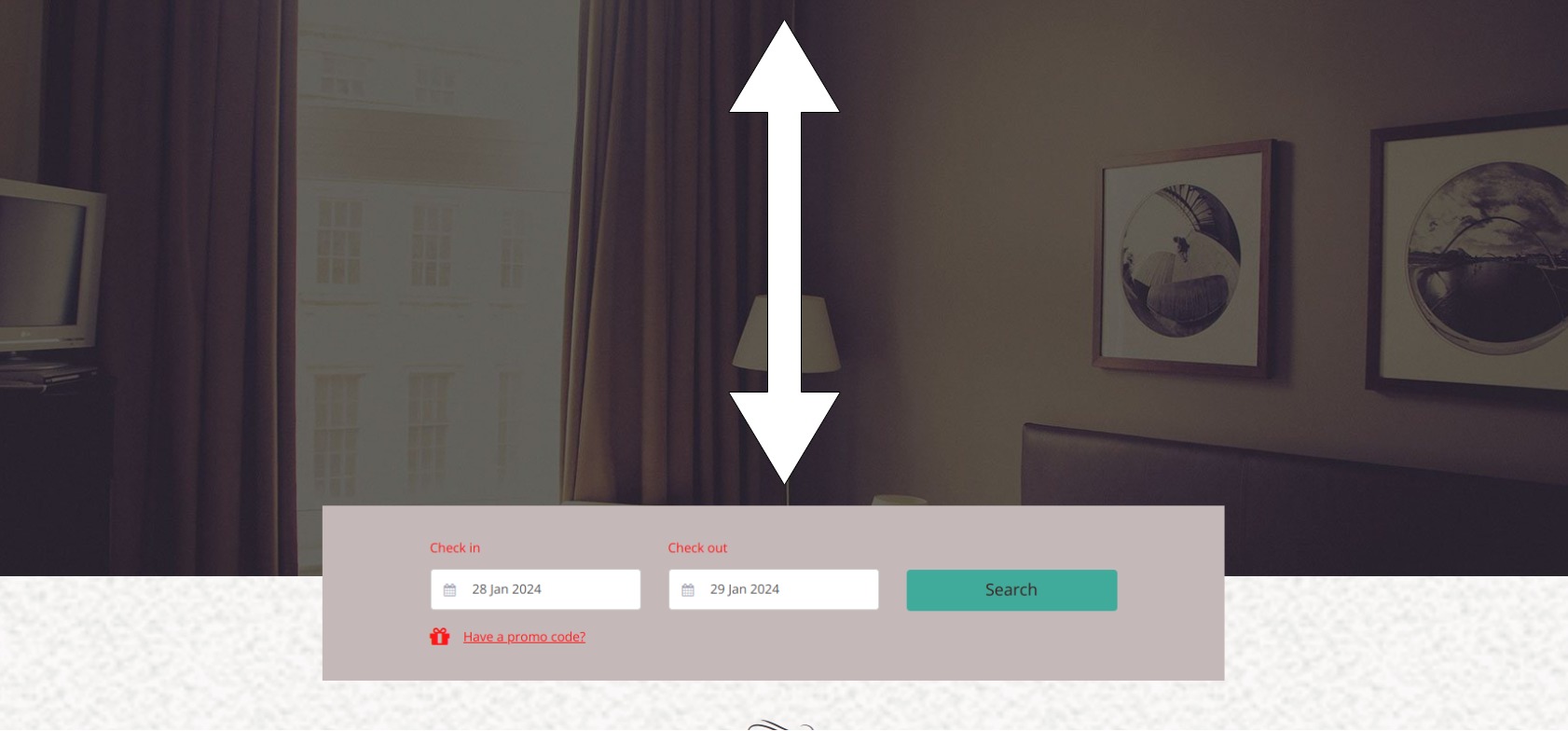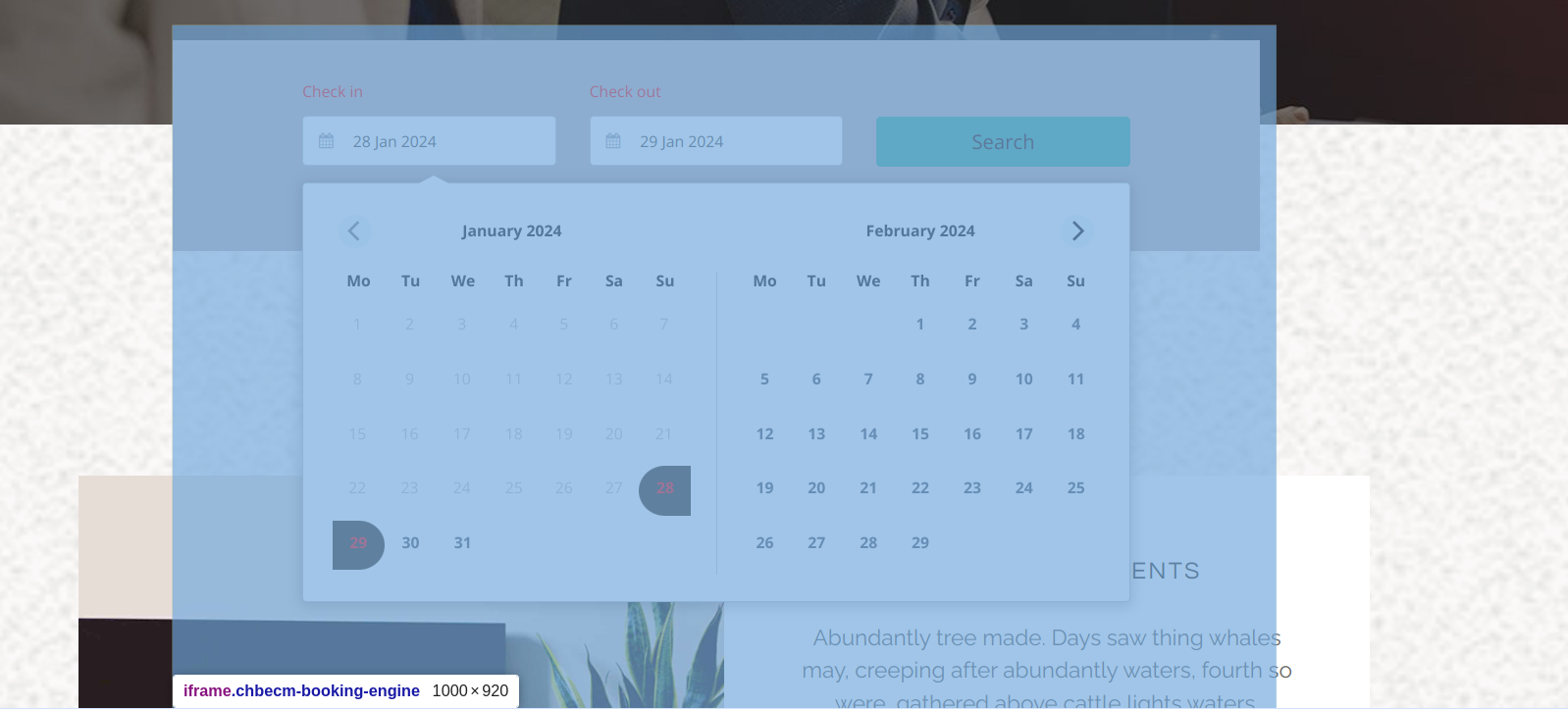 When the user clicks into the check-in date, the calendar opens while overlaying the content of the website.