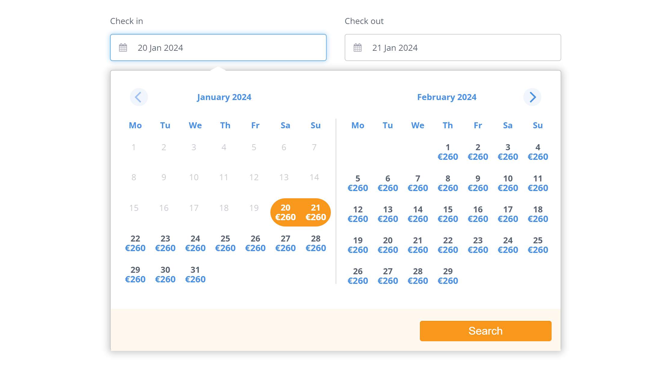 sellableUnit – a calendar type that shows the availability at the first glance. This version of the calendar is suitable for embedding in rooms, holiday homes, or apartment pages. The user can see immediately whether the room type that he likes most is available or not.